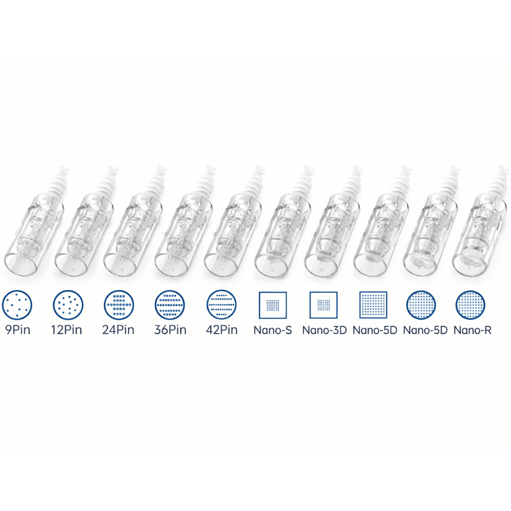 - 42-pin: Für intensive Behandlung von Narben und ungleichmäßiger Hautstruktur, die stärkere Stimulation erfordert.